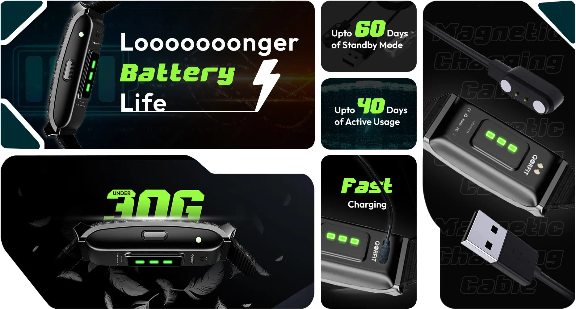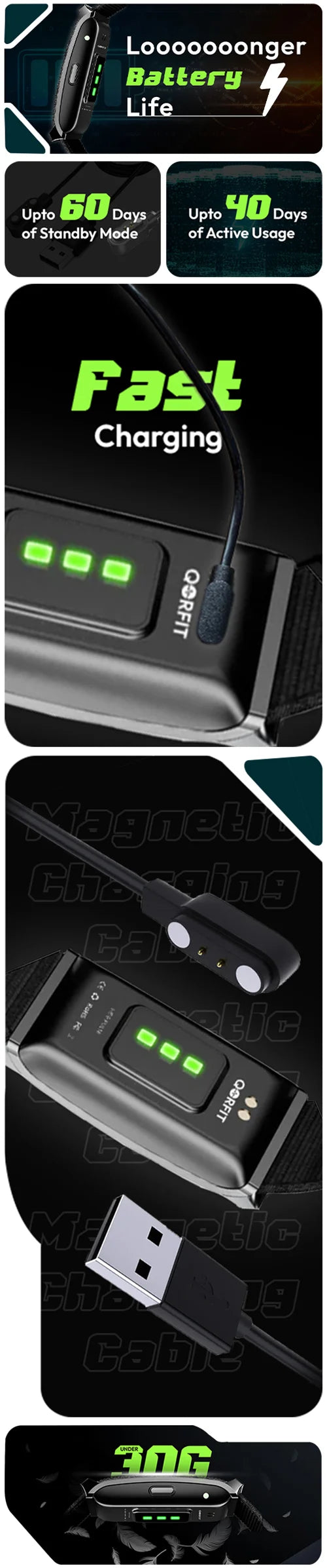 ✅ Upto 40 days battery life with fast magnetic charging