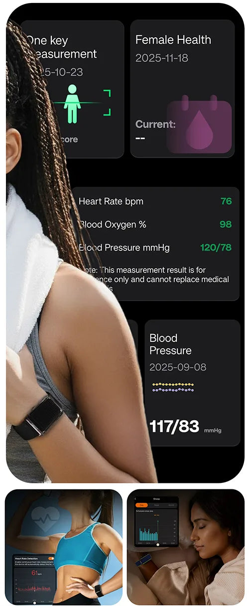 ✅ Tracks heart rate, sleep, BP, and SpO2